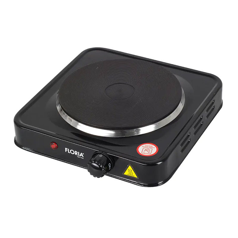 Plaque FLORIA - Type: Électrique - Nombre de feu: 1 Feu - Puissance: 1000 Watts - Thermostat réglable - Voyant lumineux - Protection contre la surchauffe - Plaque en fonte - Pieds antidérapants - Diamètre: 150 mm - Couleur: Noir - Garantie: 1an