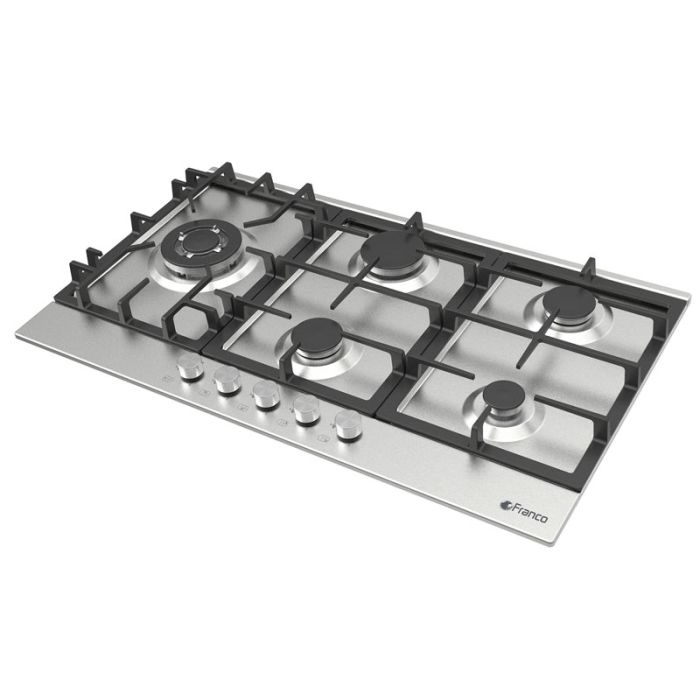 Plaque de Cuisson Encastrable FRANCO - Type de Table: à Gaz - Largeur: 90 cm - Nombre de Foyers: 5 Foyers - Grill en Fonte - Commandes frontales - Couleur: Inox - Garantie: 2 ans
