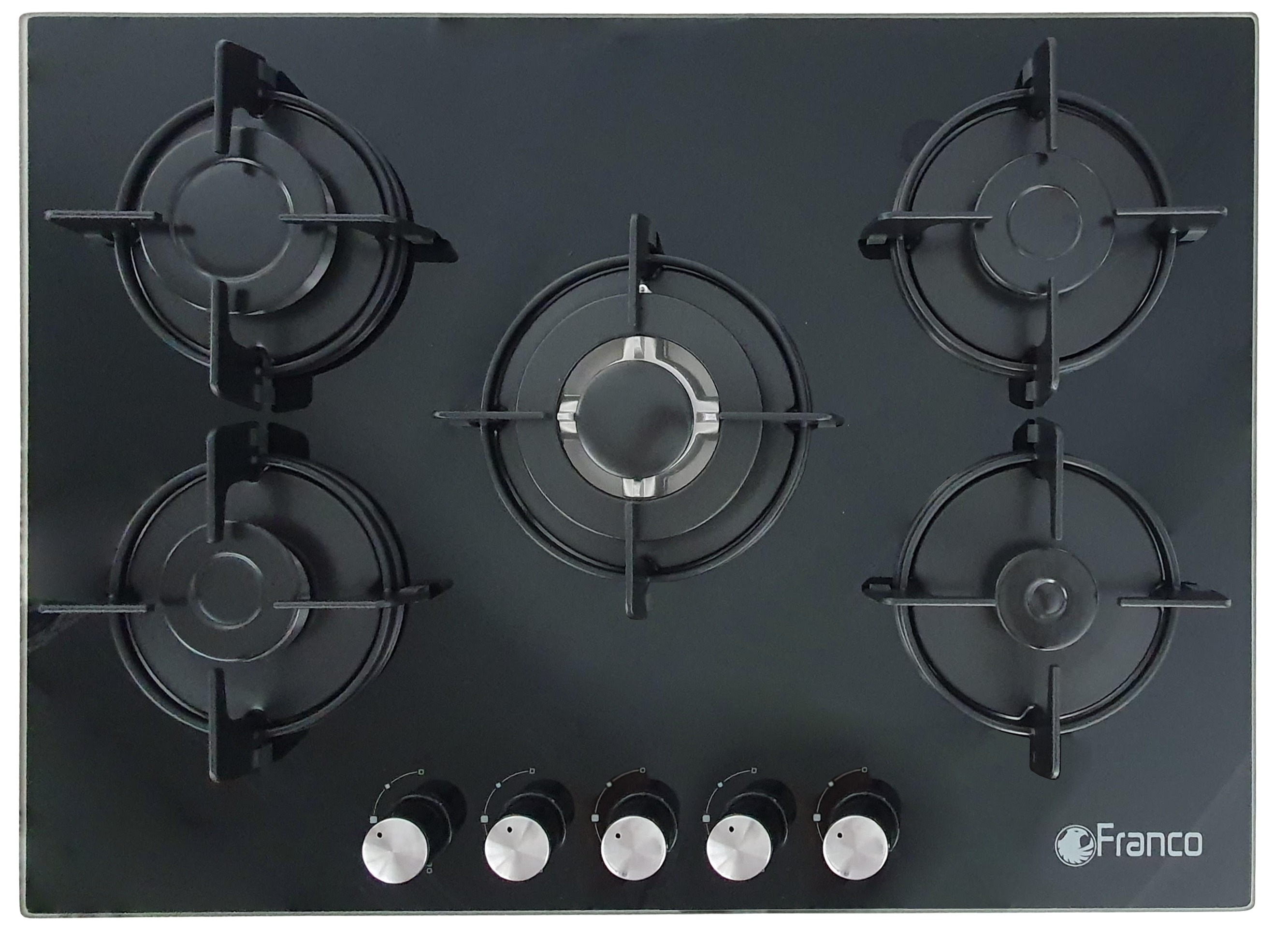Plaque FRANCO 5 feux support rond fente - Réf : 70354-BF - Plaque de Cuisson FRANCO - Revêtement: Vitro - Type de Table: à Gaz - Largeur: 70 cm - Nombre de Foyers: 5 Foyers - Allumage électronique avec une main avec feux rapide - Support en fente - Brûleurs SABAF - Couleur: Noir - Garantie: 2 ans .