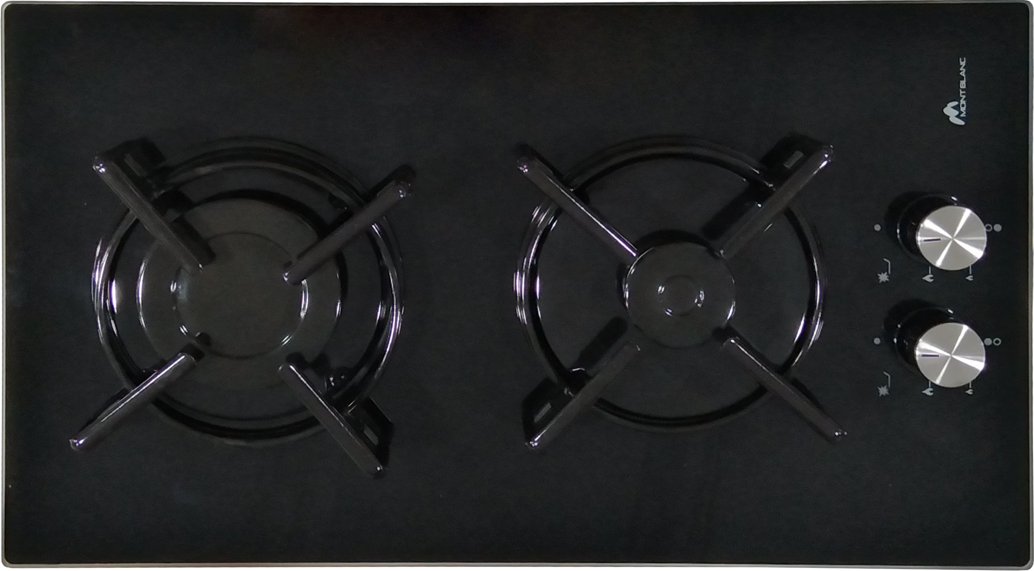 Plaque de Cuisson Encastrable MONT BLANC - Type de Plaque: à Gaz - Largeur: 30 cm - Nombre de Foyers: 2 Foyers à gaz - Flamme stabilisée - Grilles et chapeaux de brûleurs émaillées - Allumage: Automatique - Commandes: frontales - Dimensions: 510 x 287 x 45 mm - Couleur: Vitro noir - Garantie: 2 ans