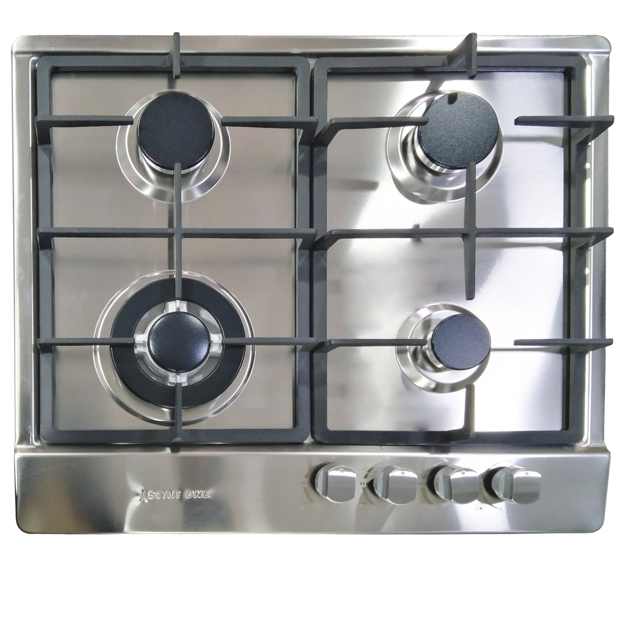 Plaque de cuisson encastrable à Gaz StarOne - 4 Feux - Couleur Inox - Allumage automatique électrique - Bruleurs à flamme pilotée - Dimensions extérieur : 60 x 51 cm - Dimensions Intérieur: 54.5 x 46.5 cm - Garantie 1 an