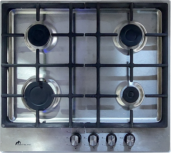 Plaque de cuisson MontBlanc PXSL60/4 - 4 Feux - Allumage électrique - Type gaz: Gaz Naturel NG G20-20 MBAR - Tension et fréquence d'alimentation: 220-240 V / 50-60 Hz - Dimensions: 10 x 58 x 51 cm - Poids: 8.6 Kg - Couleur: Inox - Garantie 1 an