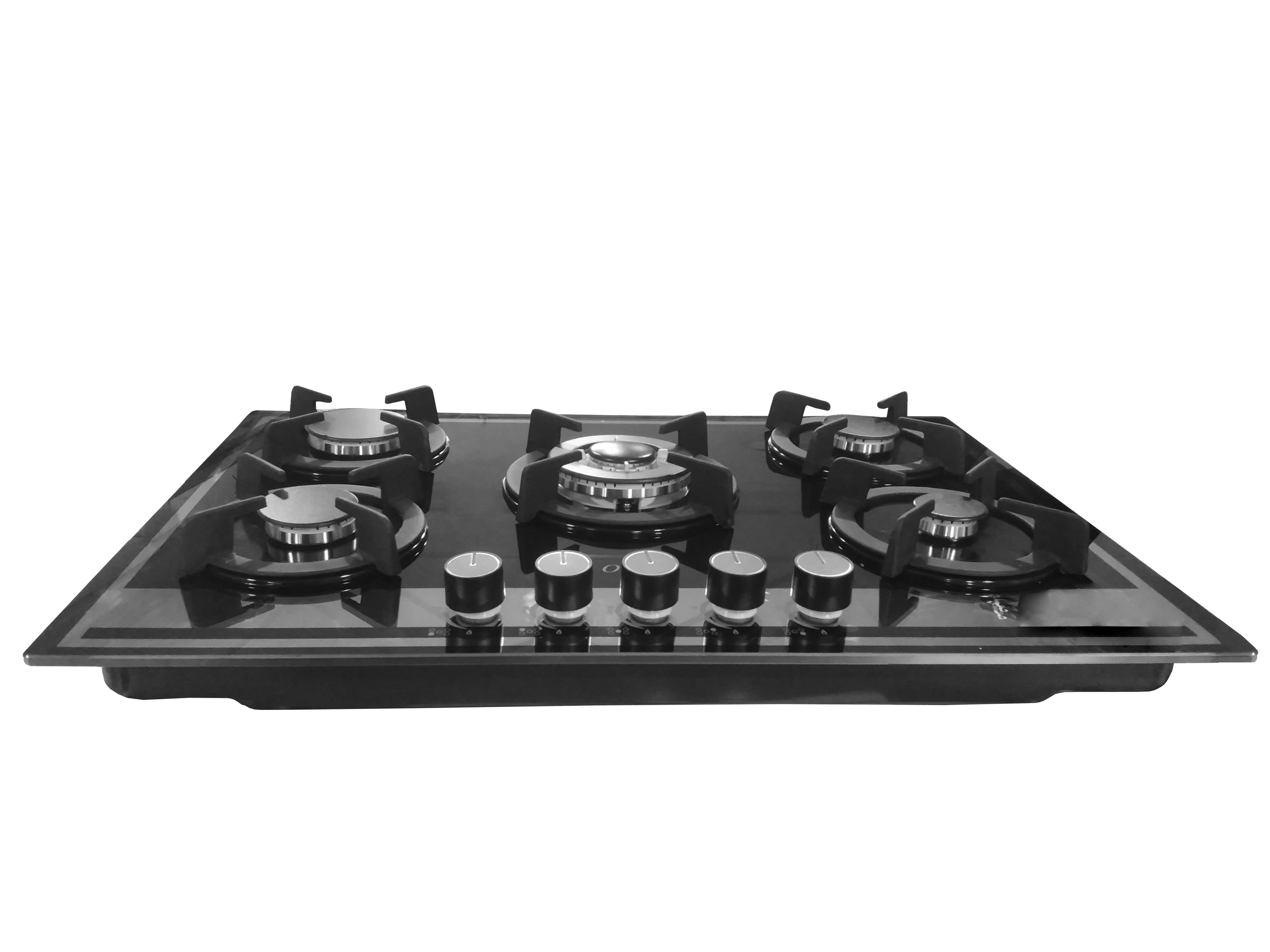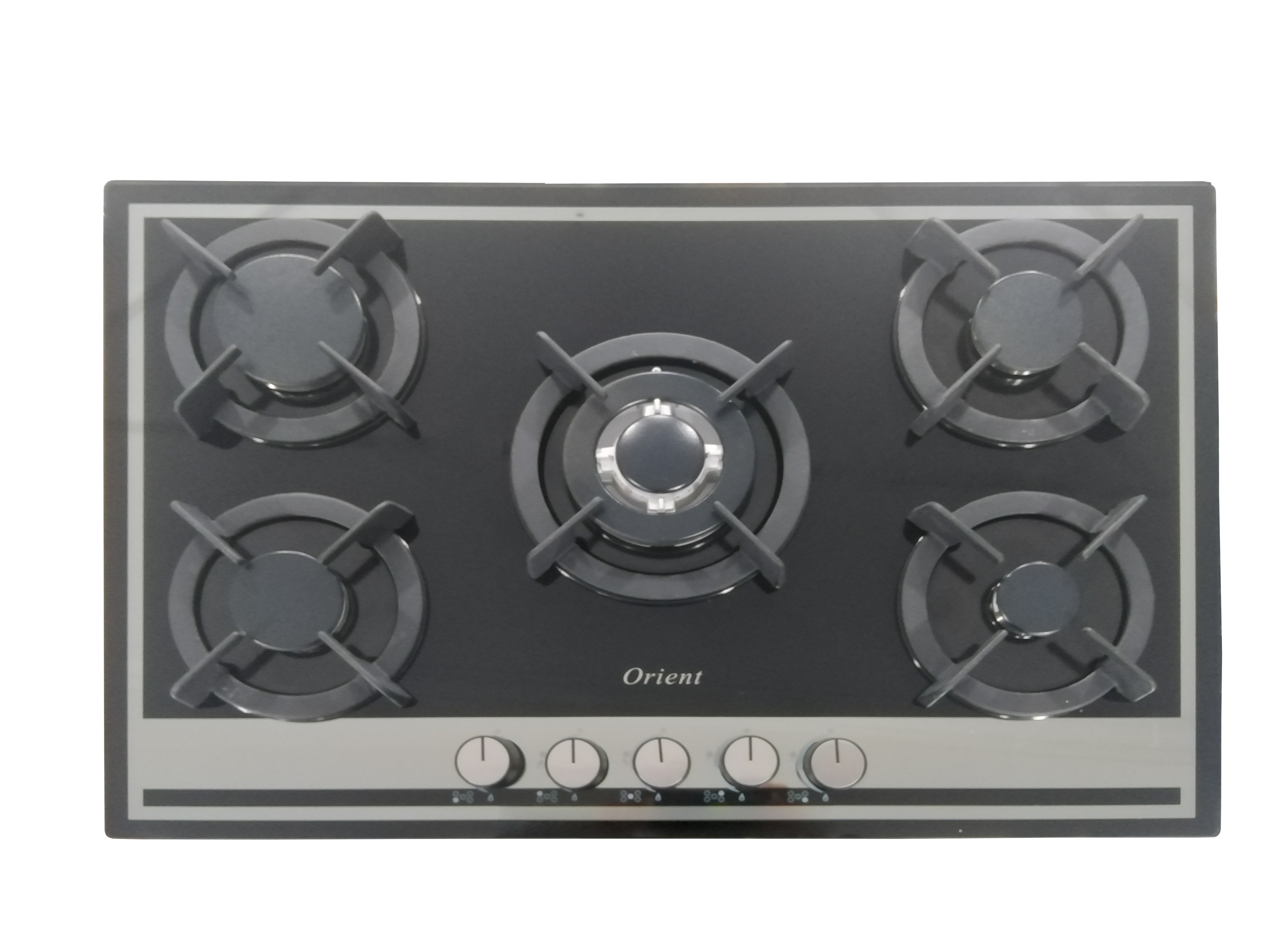 Plaque vitrée ORIENT - Configuration : Pose libre - Fonction d’allumage : électrique - Type d’élément chauffant : Brûleur à gaz – 1*Brûleur à gaz fort : 3300W– 1*Brûleur à gaz fort : 2500W– 1*Brûleur à gaz normal : 1750W– 1*Brûleur à gaz normal : 1750W– 1*Brûleur à gaz assistive : 1000W - Surface de la table de cuisson : Noir - Dimensions d’installation (L*P) (mm) : 835*475– Dimensions Produit / Emballage (mm) : 870*510 / 915*550*185 - Nombre total d’éléments de table de cuisson : 5 - Couleur : Noir - Garantie 3 ans .