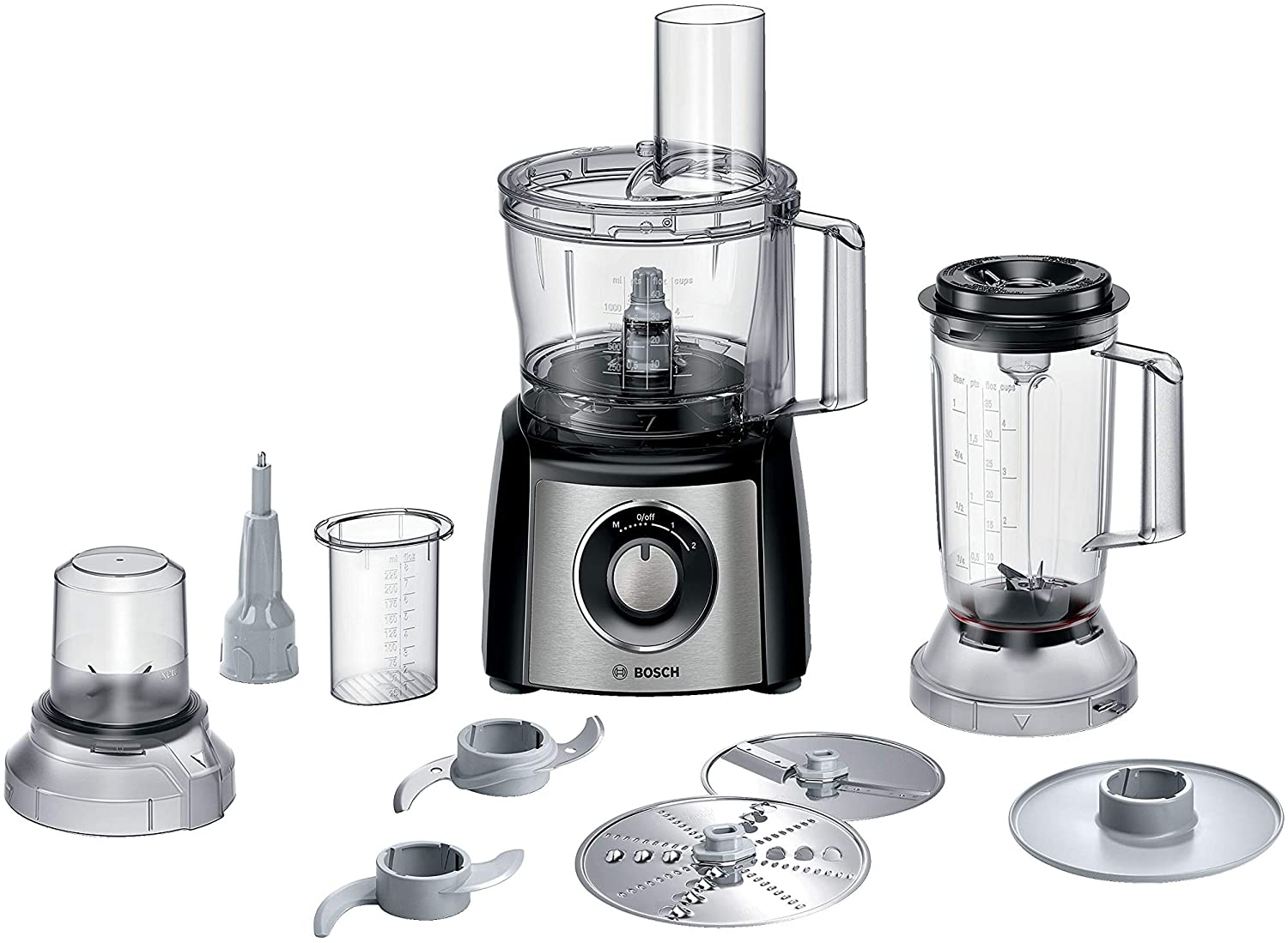 Le robot MultiTalent 3 de Bosch, à la fois compact et performant, est l'appareil électroménager qui vous permettra de réussir toutes vos préparations et recettes, même les plus exigeantes - Hautement polyvalent : le robot est doté de plus de 50 fonctions dont fouetter, mélanger, battre, mixer, hacher, mélanger, pétrir... / Grande puissance de 800 W - Le robot est équipé d'une fonction moulin à café pour moudre grains de café et épices / Couteau multifonction MultiLevel6 doté de 3 doubles lames - La grande capacité du bol de 2,3 L permet de préparer jusqu'à 0,8 kg de pâte à gâteau / Mini-hachoir avec 4 lames inox pour hacher des petites quantités de viande - composition: 1 x Bosch MultiTalent 3 robot de cuisine / Robot multifonctions pour réaliser plus de 50 tâches différentes / Avec accessoires de série / Couleur : Noir/Inox brossé