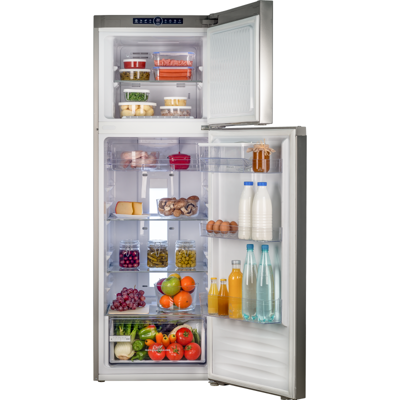 Réfrigérateur BRANDT 2 Portes - Système de refroidissement: DeFrost - Volume total: 400 Litres - Classe énergétique: A+ - Froid statique - Clayettes en verre - Dimensions: 172 x 600 x 665 mm - Couleur: Inox - Garantie 2 ans
