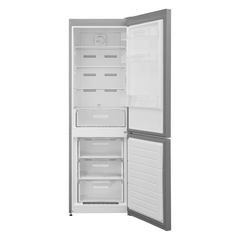 Réfrigérateur Combine Hyundai - Système de refroidissement : NoFrost - Capacité de Réfrigérateur : 291 Litres - Classe énergétique : A++ - Bac à légumes à humidité contrôlée - Balconnets de porte réglables - Éclairage LED - Portes réversibles - Bac à œufs, 4 balconnets, bac à glaçon, bac à légumes, 3 étages en verre - Couleur : Inox - Garantie : 3 ans