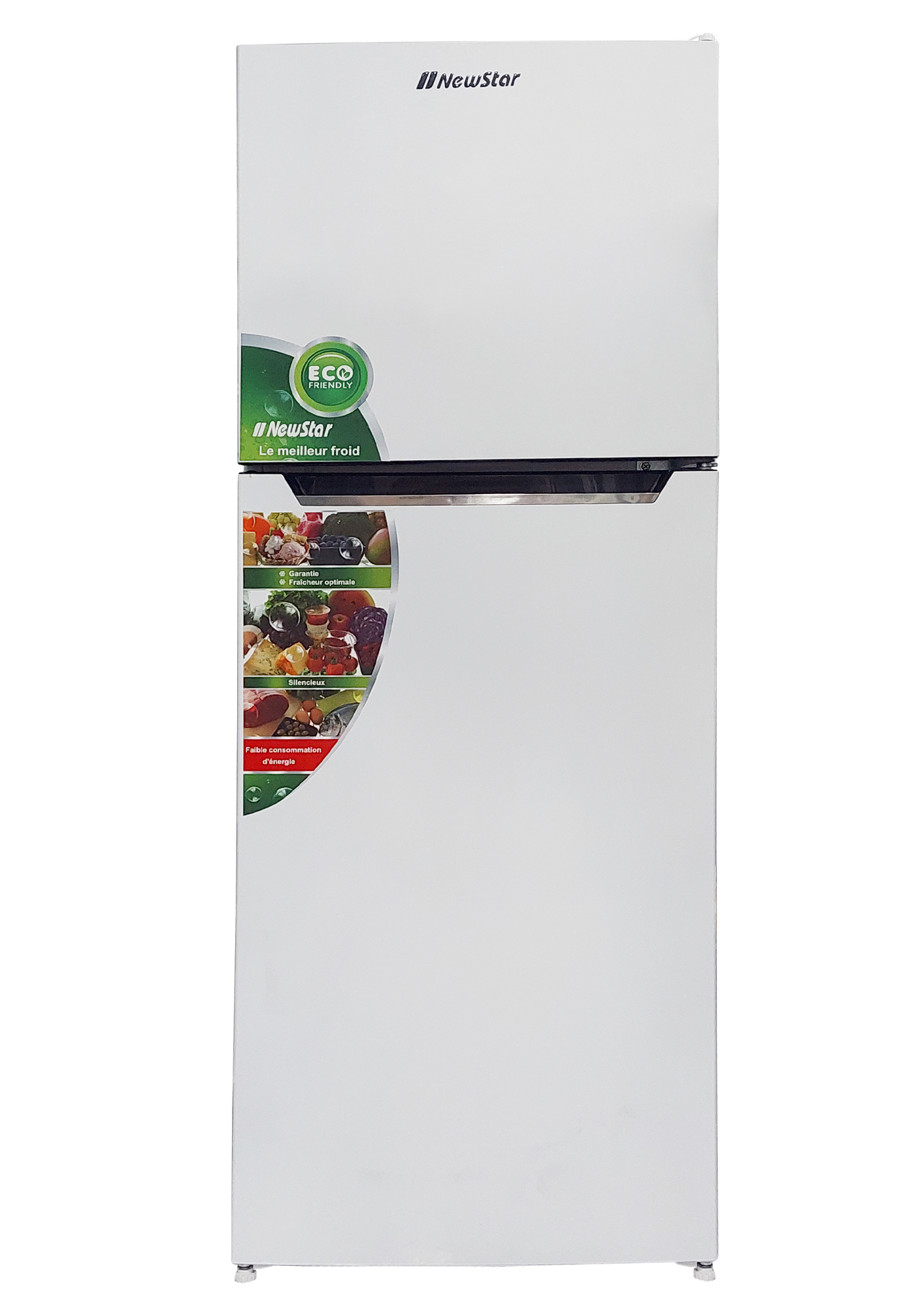 Réfrigérateur NEWSTAR - 2 Portes - Système de refroidissement: DeFrost - Capacité Total net (lt) 138 - Classe énergétique: A++ - Poignée intégrée - 3 clayettes réglables - 4 balconnets transparents - 1 Bacs à légumes et à fruits - 1 Clayette congélateur - Dimensions: H x L x P: 125 x 48.5 x 49 cm - Couleur: Blanc - Garantie: 2 ans