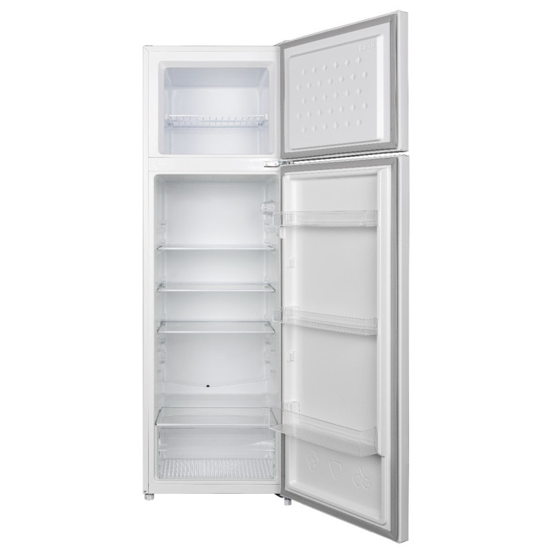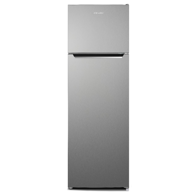 Réfrigérateur NEWSTAR - 2 Portes - Système de refroidissement: DeFrost - Capacité: 360 Litres - Classe énergétique: A++ - Eclairage LED - Dégivrage automatique - Porte réversible - Serrure de sécurité - 4 x Etagère en fil - 3 x Balconnets Transparent - 1 x Grand Bac à légumes en Bleu Transparent - 1 x Etagère en fil - Pieds réglables - Alimentation: 220 -240 / 50Hz - Dimensions: 170 x 54.5 x 56.6 cm - Couleur: Inox - Garantie: 2 ans