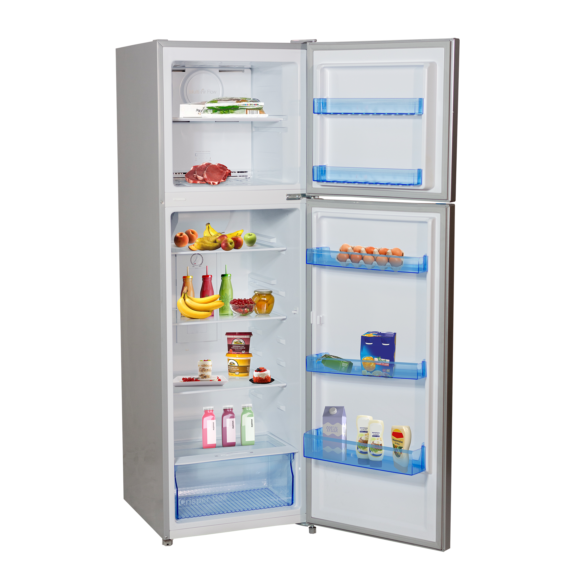 -Capacité en Litre:253,Alimentation:220 -240 / 50Hz,DIMENSION NET (HXLXP) cm:170 x 54,5x 59,0,Poignée:Encastrée,Portes réversibles:2,Etagère en verre:3,Balconets en Bleu Transparent:3,Balconets en Bleu Transparent CONGELATEUR:2,Couleur :Silver