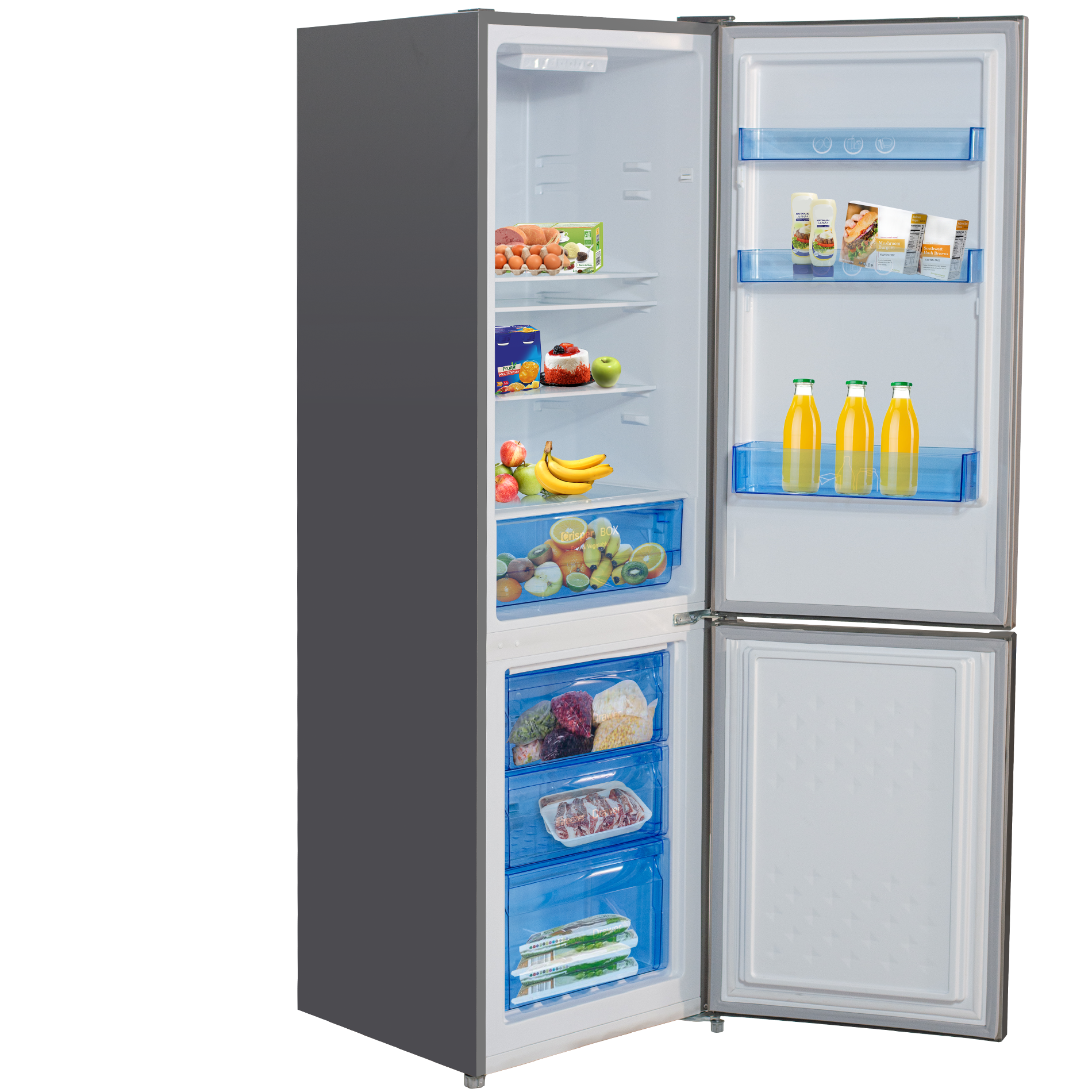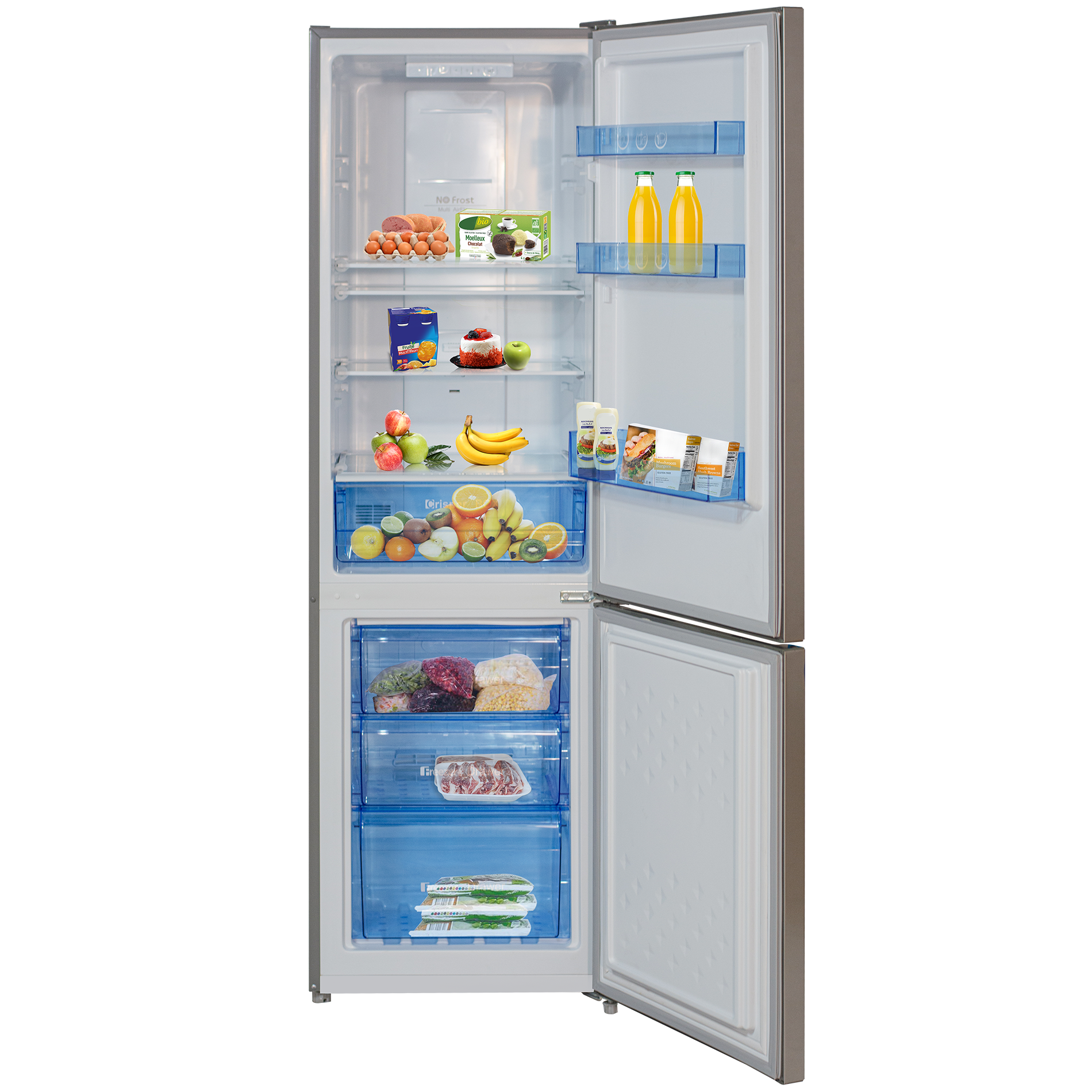 Réfrigérateur Combiné NEWSTAR Defrost - Volume total 370L - No-Frost Muti Air Flow - Volume net du réfrigérateur 223L - Classe énergétique 2 - Volume net du congélateur 94L - 2 Portes Réversibles - Alimentation 220 -240 / 50Hz - Double portes - Eclairage LED - Dimensions 176 x 54 x 53.5 cm - Couleur Inox - Garantie 2 ans