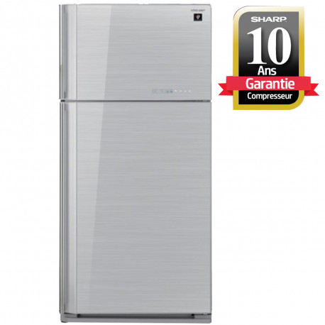 Réfrigérateur SHARP 2 portes - Système de refroidissement: No Frost - Volume Brut: 525 Litres - Classe énergétique: 1 - Technologie J-Tech Inverter - Système de froid ventilé non desséchant Hybrid Cooling - Porte en fibre de verre - Panneau tactile - Alarme porte ouverte - Eclairage intérieur LED - Couleur: silver - Garantie: 3 ans