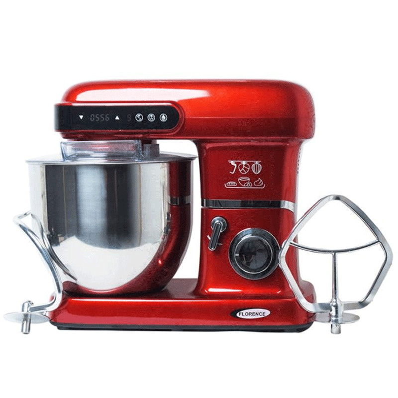 Robot Pétrin FLORENCE - Puissance: 2200 Watts - Capacité du bol: 10 Litres - Avec Afficheur Digital - 8 vitesses variables - Pieds antidérapants - Avec bouton d'Inclinaison - Accessoires: Fouet, crochet et batteur - Mélanger et mixer facilement toutes vos préparations - Facile à nettoyer - Couleur: Rouge - Garantie: 1an