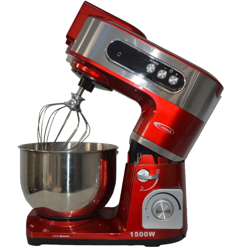 Robot Pétrin Florence SM6409E - Puissance : 1500W - Capacité du Bol : 6L - Nombre de vitesse : 6 Vitesses - Facile à utiliser - Pieds antidérapants - Afficheur Digital - Format compact idéal pour les petites cuisines - Bol en acier inoxydable - Accessoires : Fouet, Crochet à pétrir, Batteur - Système de verrouillage sécurisé - Couleur : Rouge - Garantie : 1 an