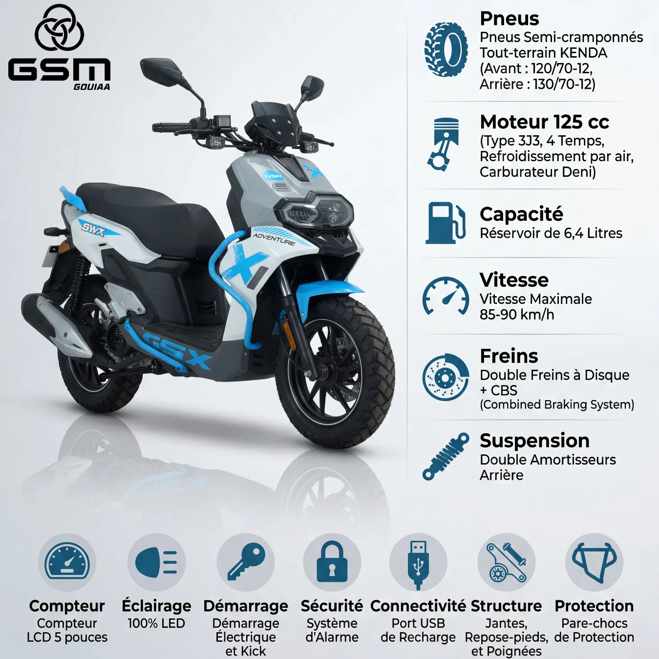 • Pneu avant semi cramponné tout terrain : 120/70-12 – KENDA