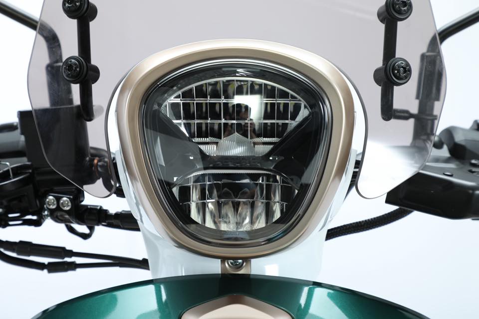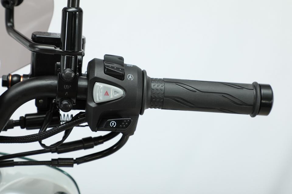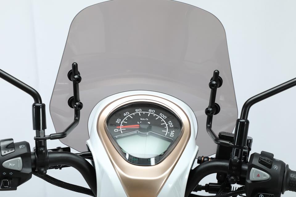 - Phares LED, feux arrière LED OSRAM, clignotants LED OSRAM- Tableau de bord numérique, panneau numérique- Keyless, port USB, commandes rétroéclairées- Jantes en alliage aluminium- Ouverture électrique du siège et du réservoir- Porte-bagages / support top case- Coffre premium 35 L doublé de tissu- Poignées passager