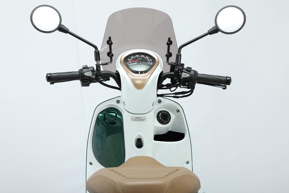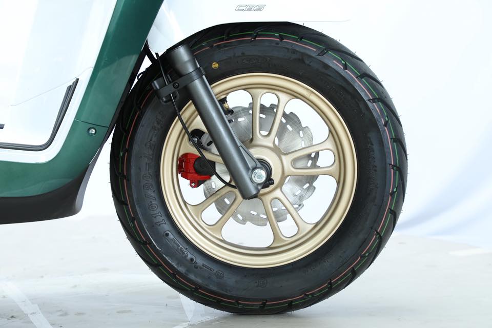 - Injection : BOSCH- Moteur : technologie HONDA, refroidi par air- Lampes : LED OSRAM- Pneus : CST- Consommation : 2,2 L/100 km- Homologation : EURO 5+- Cylindrée : 125 cm³- Puissance maximale : 6,3 kW à 7 500 tr/min- Couple maximal : 9,4 Nm à 6 000 tr/min- Démarrage : Calculateur électronique Bosch- Système de freinage : CBS- Frein avant : disque Ø 220 mm, étrier Nissin double piston, commande hydraulique- Frein arrière : tambour- Suspension avant : fourche télescopique, débattement 90 mm- Suspension arrière : amortisseur 76,5 mm- Dimensions pneus : 110/90 – R12 64J avant et arrière- Dimensions (L x l x H) : 1810 x 705 x 1110 mm- Empattement : 1 275 mm- Hauteur de selle : 740 mm- Garde au sol : 135 mm- Poids sec : 137 kg- Capacité du réservoir : 6,3 L- Cadre : acier renforcéÉquipements :- Phares LED, feux arrière LED OSRAM, clignotants LED OSRAM- Tableau de bord numérique, panneau numérique- Keyless, port USB, commandes rétroéclairées- Jantes en alliage aluminium- Ouverture électrique du siège et du réservoir- Porte-bagages / support top case- Coffre premium 35 L doublé de tissu- Poignées passagerCouleurs disponibles : Vert
