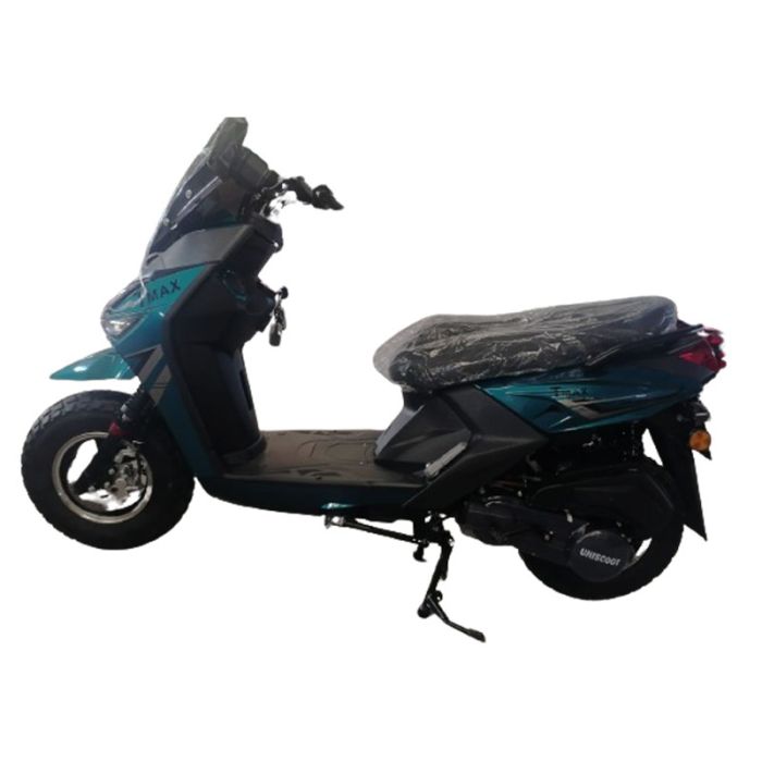 Scooteur UNISCOOT TMAX - Moteur: 125 cm³ 4 temps - Vitesse Maximale: 120 km/h - Frein: disque / tambour - Avec alarme - Dimensions: 2050 x 750 x 1250 mm - Couleur: Bleu Canard - Garantie: 2500 KM