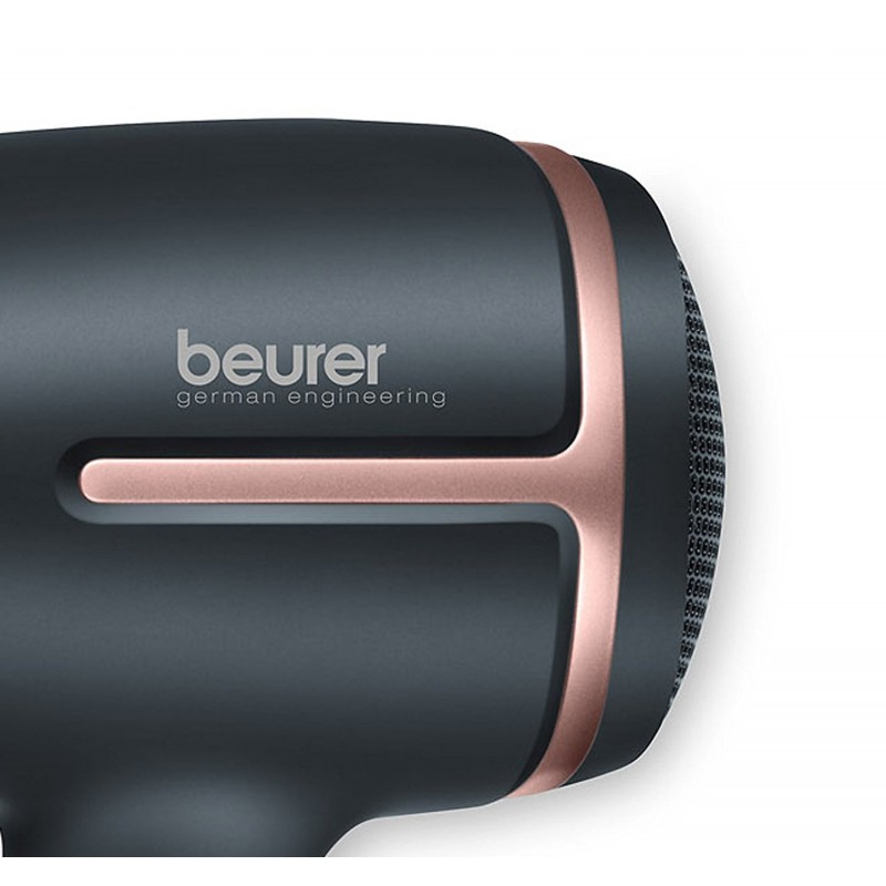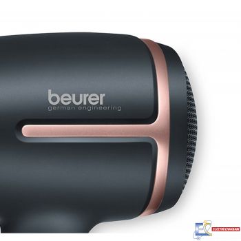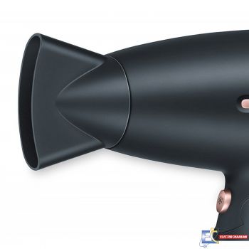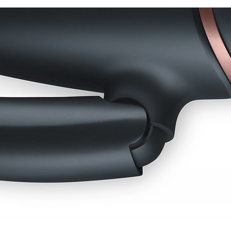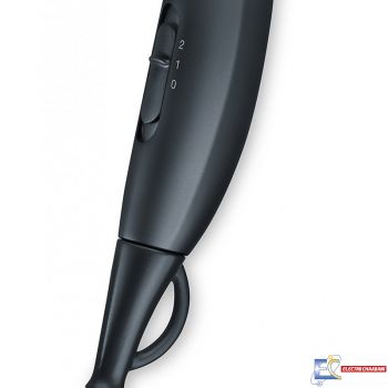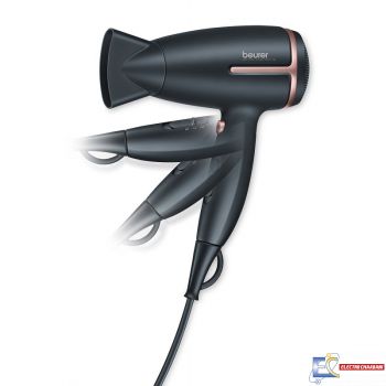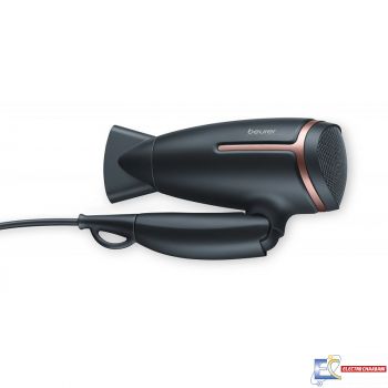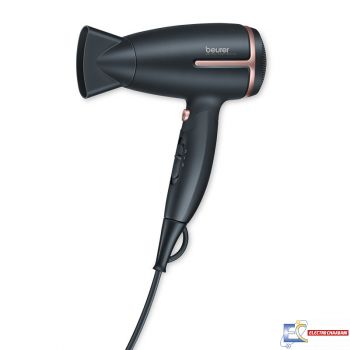Sèche-cheveux de voyage beurer HC 25 - Puissance 1 600 W - Fonction ionique - 2 niveaux de chaleur - Position air froid - Poignée rabattable ergonomique - Variation de tension: 110 - 120/220 - 240 V - Buse professionnelle fine - Filtre de sécurité amovible - Surface Soft Touch - Sécurité anti-surchauffe automatique - Anneau de suspension - Dimensions: 25,9 x 8 x 15,6 cm - Garantie 1 an