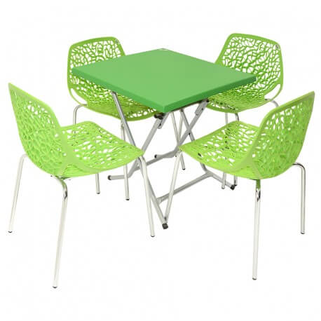 Table pliante carré top en Werzalit et un socle métallique finition Epoxy.