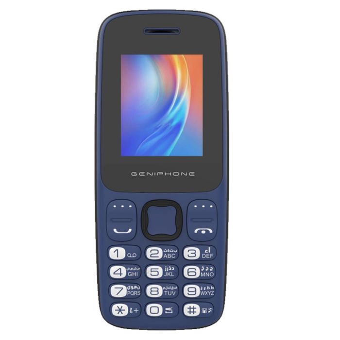 Téléphone Portable GENIPHONE A2 Mini - Écran: 1.8" - Mémoire: 32Mo - Stockage: 32Mo - Capacité Batterie: 800mAh - Radio FM sans fil - Double SIM - Torche - Lecteur carte mémoire - Couleur: Bleu - Garantie: 1an
