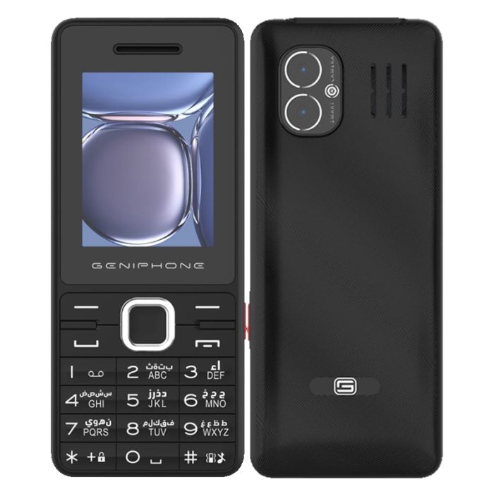 Téléphone Portable GENIPHONE A33 - Écran: 2.4" - Caméra: 0.3MP - Mémoire: 32Mo - Stockage: 32Mo - Capacité Batterie: 1800mAh - Radio FM sans fil - Double SIM - Dual Torche - Bouton de torche latérale - Lecteur carte mémoire - Couleur: Noir - Garantie: 1an