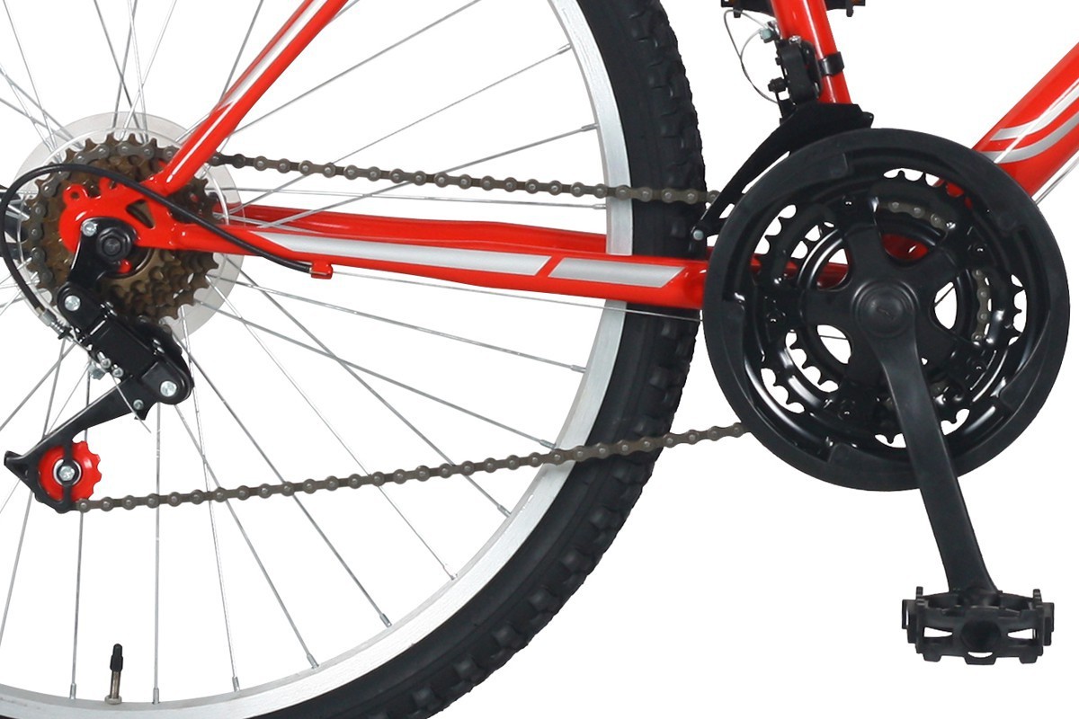 - Taille: 26 POUCE - Cadre: Cadre en acier - Jantes: Jantes en alluminium - Derailleur: 21 Vitesses - Selle: Selle réglable rapide - Pneu: Pneu et chambre à air de qualité - Suspensions: Pas de suspensions - Options: Manette rotative, Garde boue AV/AR - Couleur: Rouge - Bleu - Noir